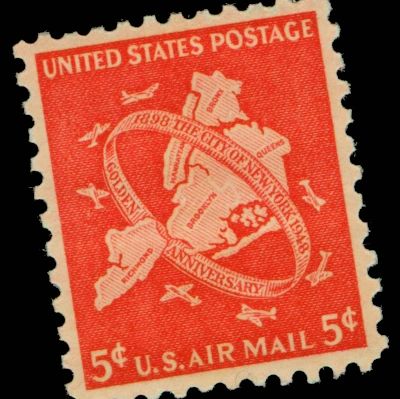 The 1948 Golden Jubilee was particularly extravagant, and featured an additional spectacle: an airshow at the city's brand new New York International Airport (later renamed J.F.K. Airport). The U.S. Post Office even issued a five-cent airmail postage stamp featuring the Golden Jubilee logo to mark the occasion.