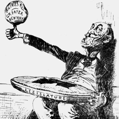 Image: Boss Platt stuck in his thumb and pulled out a plum: Greater New York!